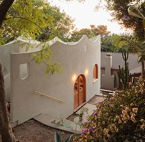 This project is a writing room for a filmmaker and poet in Los Angeles. Situated midway up a steep hill just above the main house the building engages multiple spaces and levels within the yard. A single room and powder room, it is enclosed by the curved wrapper of the exterior walls and crowned with a rooftop deck surrounded by an expressive parapet. The building engages with the site and surrounding landscape while transporting the viewer into a dream like space.